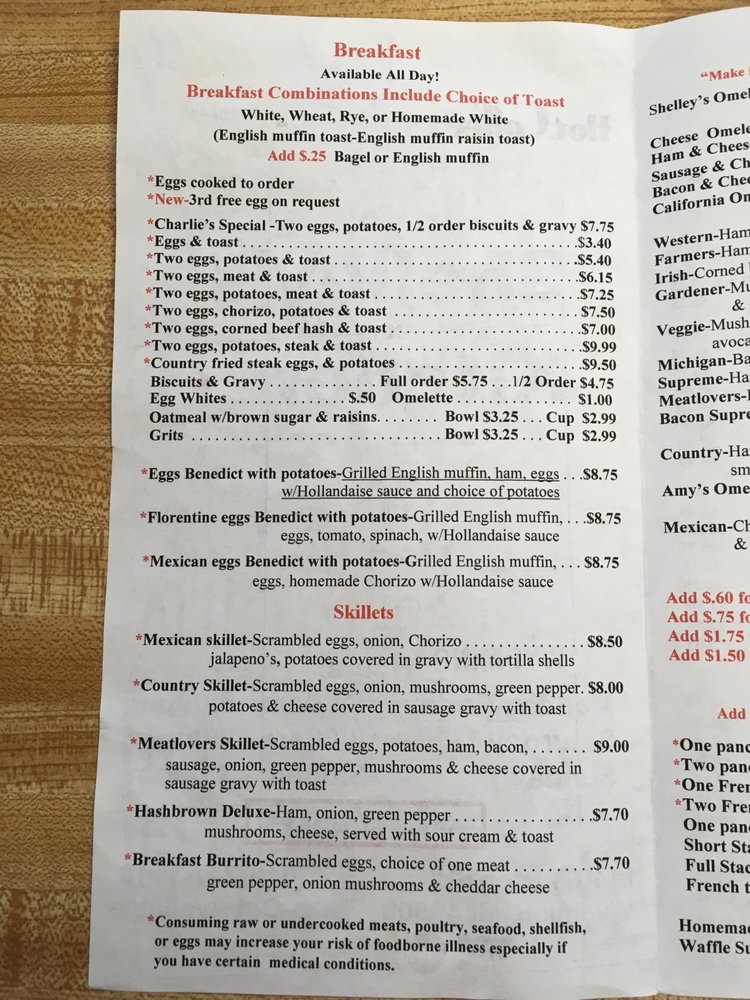 eggs, potatoes with a - order biscuits, gravy, and no toast.